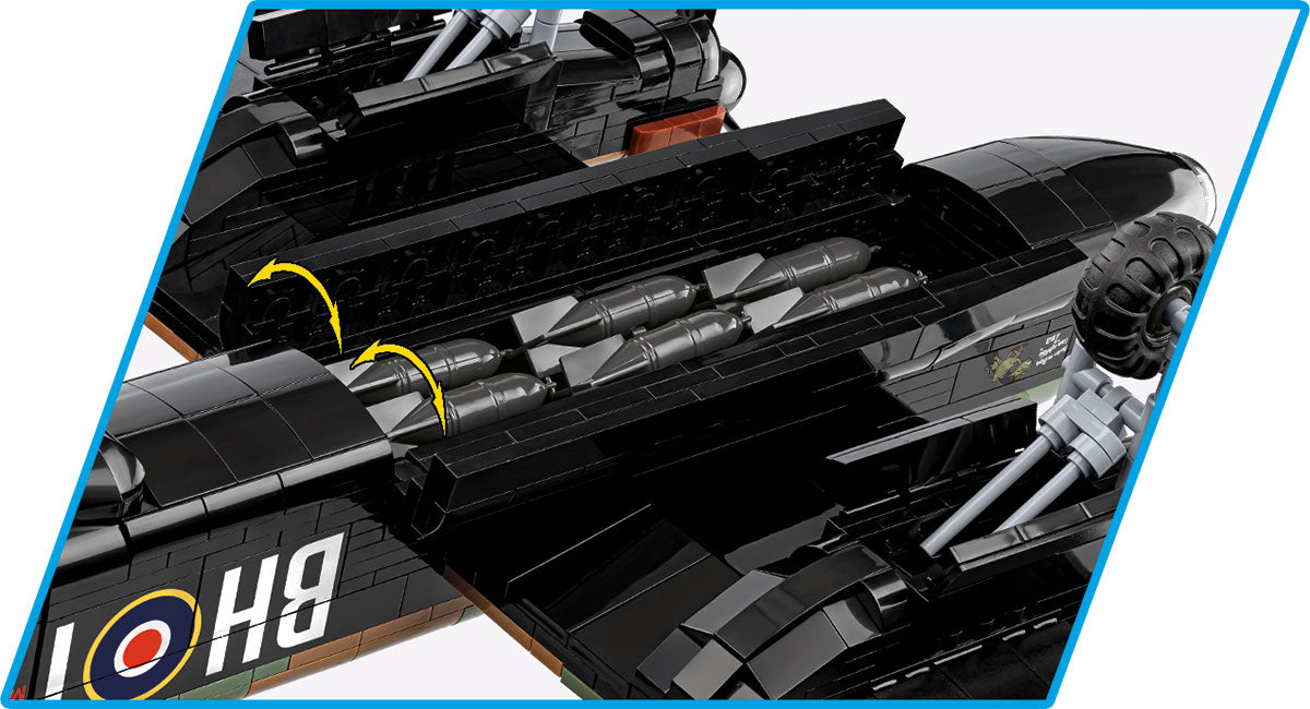 The Avro Lancaster B Mk.I/III was a key element of the British bombing strategy during World War II. Its ability to carry large bomb loads, durability and versatility made it one of the most effective and versatile bombers used by the Allies. The new model has the markings of the Polish 300th Bomber Squadron "Ziemia Mazowiecka". Additionally, the model has movable propellers, retractable landing gear, opening bomb bay with block bombs, a block with the name of the set, a miniature reproduced interior and a figure of a Polish pilot from the 300th Bomber Squadron.
