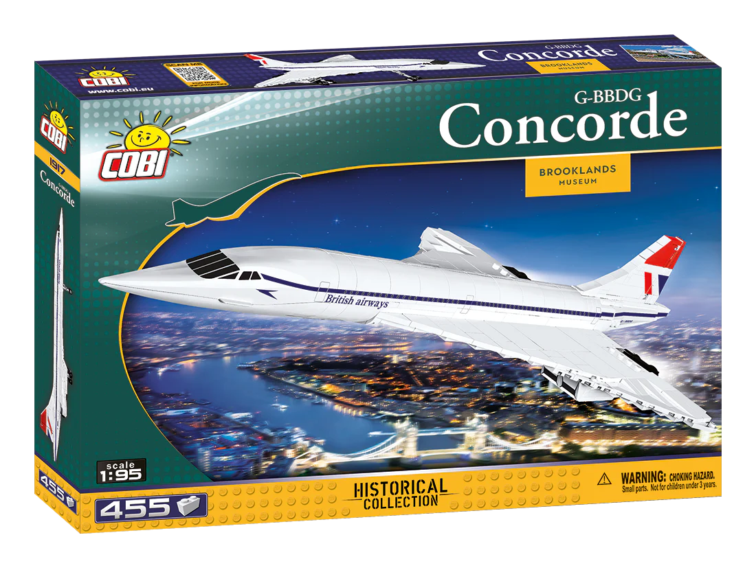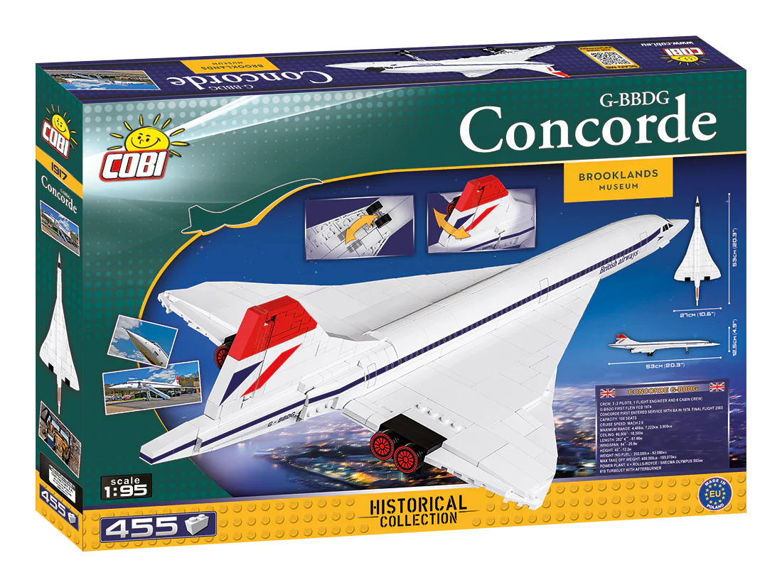 From the world of COBI comes a model that features the Concorde G-BBDG supersonic passenger aircraft. This was a test model for British Airways. For several years it was used on test flights & never entered service. Over time, it began to be used as a base of spare parts for the other craft that were in service. Since 2003, the aircraft has been exhibited at the Brooklands Museum (Weybridge).
