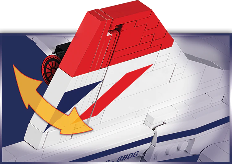 The Concorde brick kit is accurately mapped using as many as 455 parts.Using high-quality stickers to reproduce the markings on the plane, this model will really please those designers who like details in their kits. The high quality of this set means that the stickers do not wear out over time or when playing with the baby's hands. The plane is equipped with a fully operational landing gear. When the wheels are extended, they can be turned. The rudder direction is also movable.