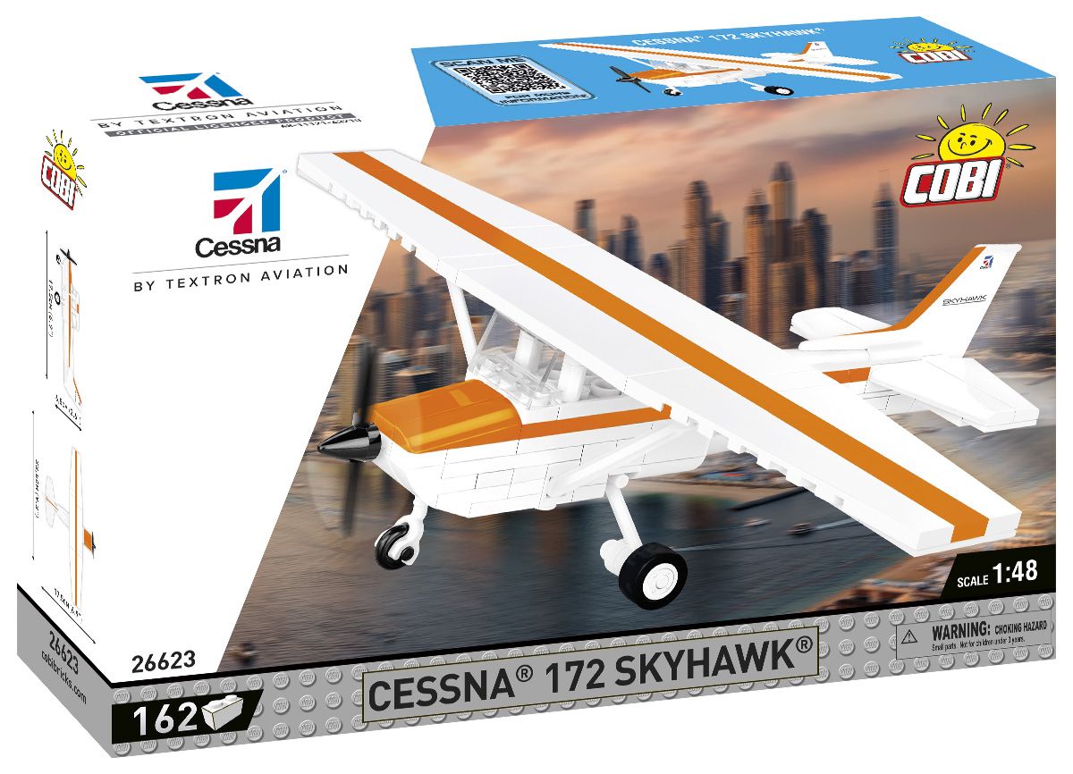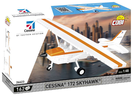 We designed the block model with attention to detail in a scale of 1:48 using 160 elements. Its size fits perfectly into the collection of our modern aircraft. The model has rotating wheels and a movable propeller. There are also prints on the blocks, no stickers here! Especially for this set we designed a new block shape - a vertical stabilizer - so that our model imitates its inspiration as realistically as possible. Building the set is simple and hassle-free thanks to the clear paper instructions and the block Cessna 172 Skyhawk is a must-have model for civil aviation enthusiasts. Take your passion home and build it!