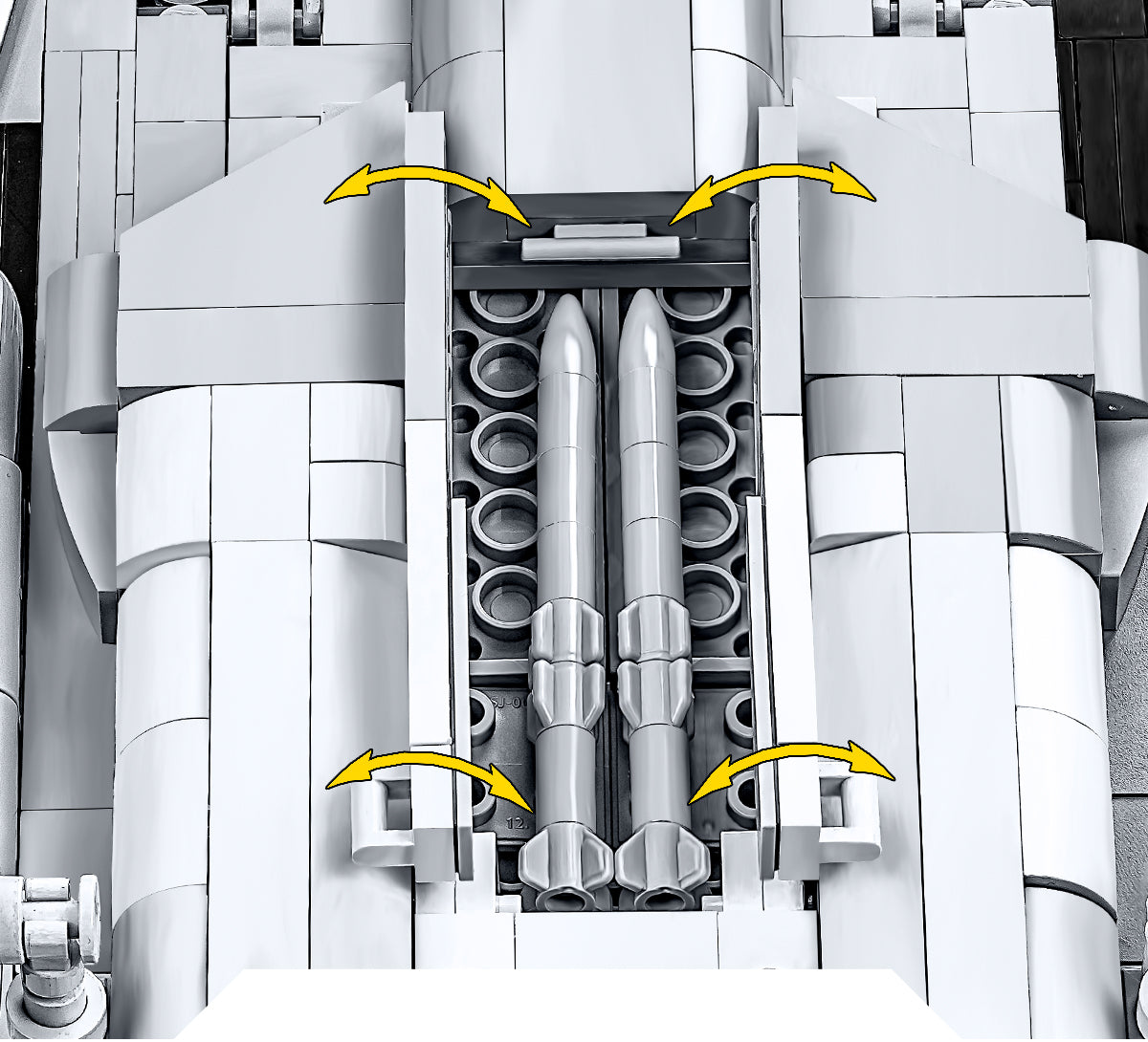 The 1:48 scale Su-57 Felon model from COBI is a faithful replica of the fictional fighter from Top Gun: Maverick, which represented the mysterious forces of an unknown Middle Eastern nation in the story. The painting and markings have been meticulously recreated based on the film original - precisely the same as on screen! The same digital camouflage, the same colors, the same atmosphere of mystery and terror that accompanied Maverick and his students on their climactic mission.