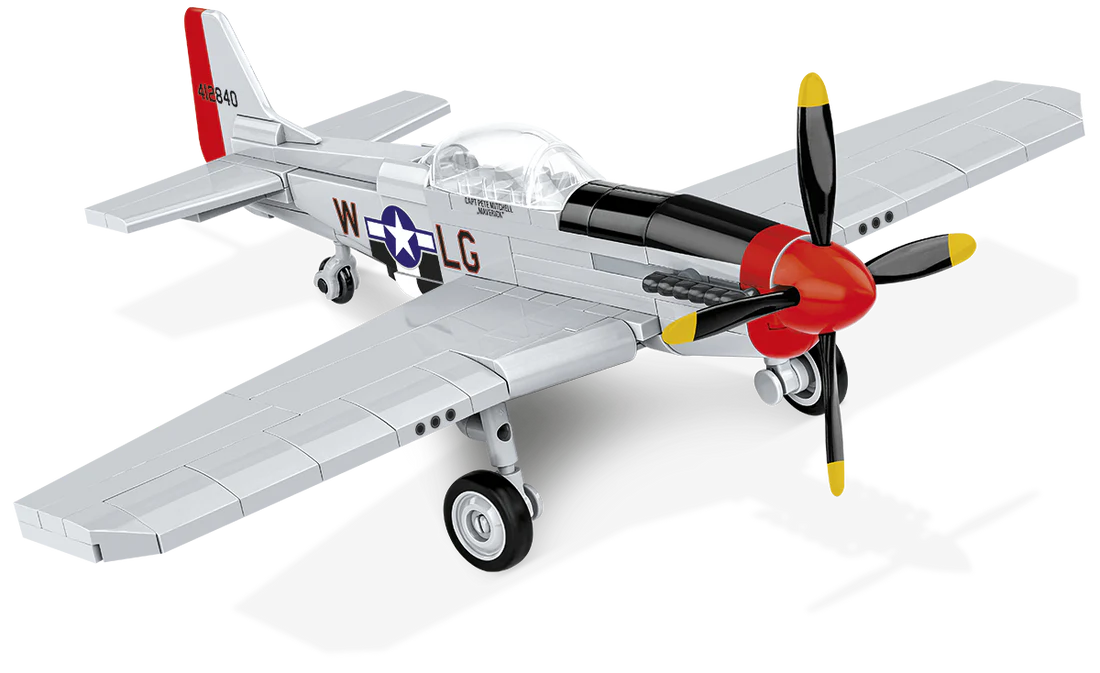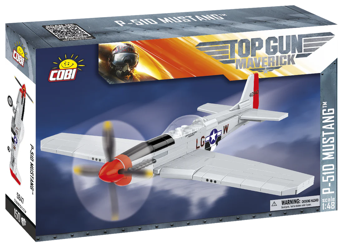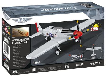 The Mustang P-51D is a unique model of the movie aircraft released under the original TOP GUN: Maverick™ license. The main character of the film takes great pride in owning this very aircraft. The model was designed with 150 COBI construction blocks in 1:48 scale and includes only high-quality prints recreating the markings of the movie plane. The licensed Mustang made of COBI bricks is not only a great movie toy, but also a model that can start a collection among fans of action movies, aviation and military technology!