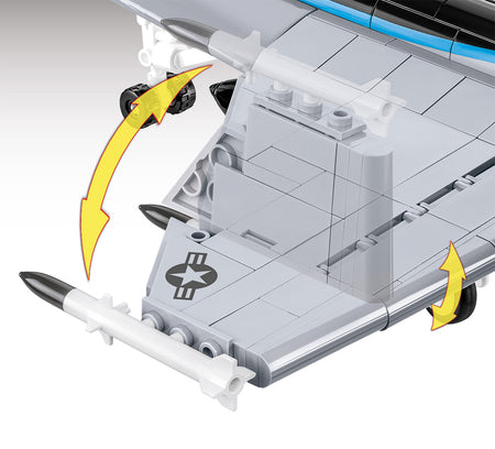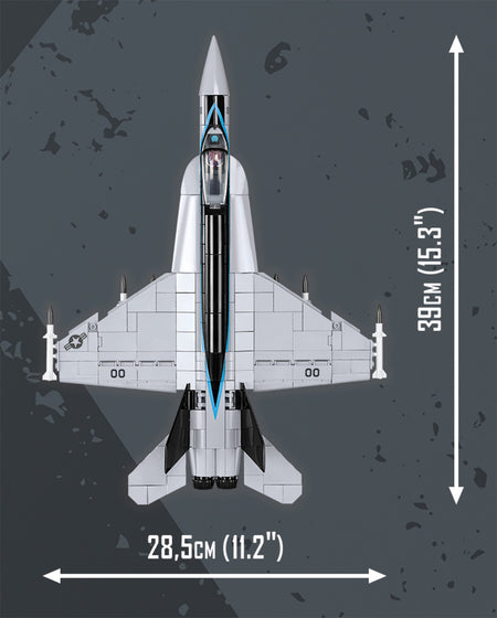 The F/A-18E Super Hornet is a unique model of the movie aircraft released under the original TOP GUN: Maverick™ license. Legendary film pilot and US Navy instructor Pete "Maverick" Mitchell trains a new generation of pilots in just such machines. Build your own Super Hornet in 1:48 scale. The model was faithfully reproduced from 560 COBI construction blocks, and the latest redesigned edition includes specially designed thin vertical fins and numerous structural improvements. Now the model looks even better and is even harder to resist! In the F/A-18E Super Hornet set you will find high-quality prints faithfully reproducing the original markings of the movie jet. No stickers here! There is a large arsenal of weapons under the wings of the plane and in the cabin you can place a special brick-pilot. The set also includes a block display stand and a plate containing the name of the plane and the film's logo. This exclusive licensed set is perfect for fans of action movies, aviation and model building! Feel the adventure of Maverick and build it for yourself!