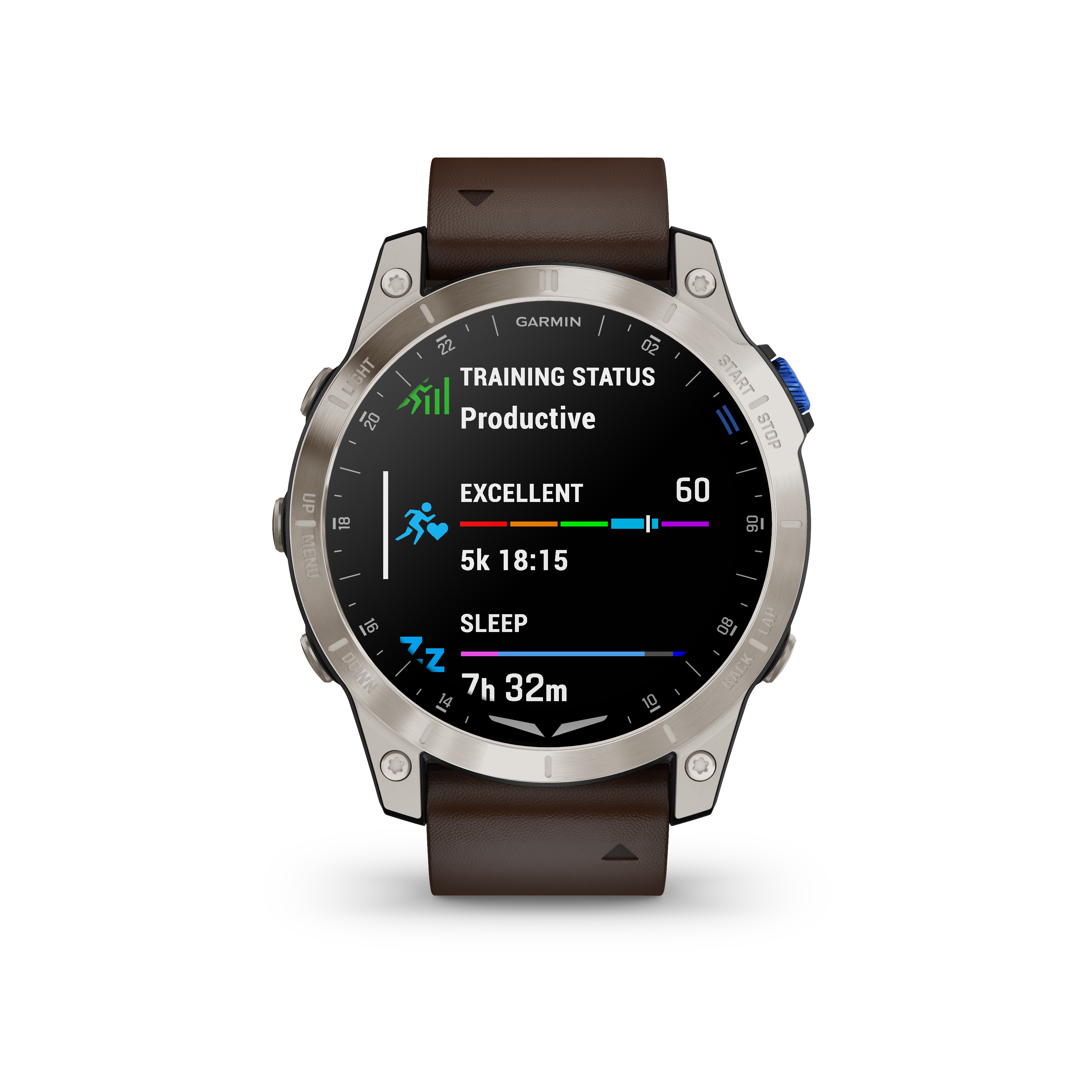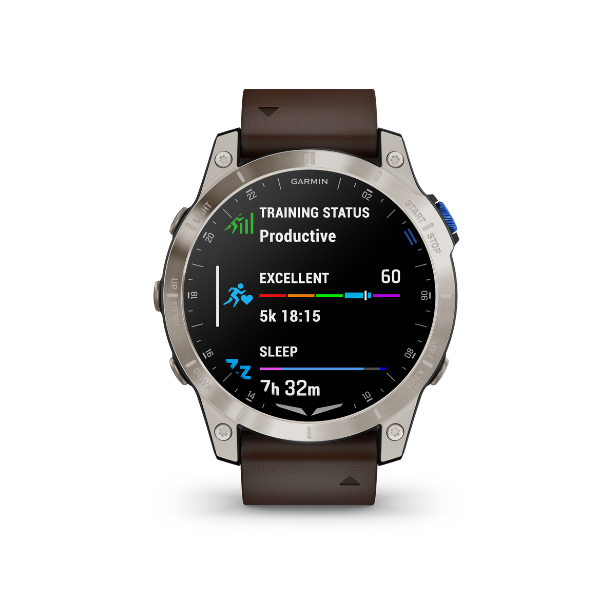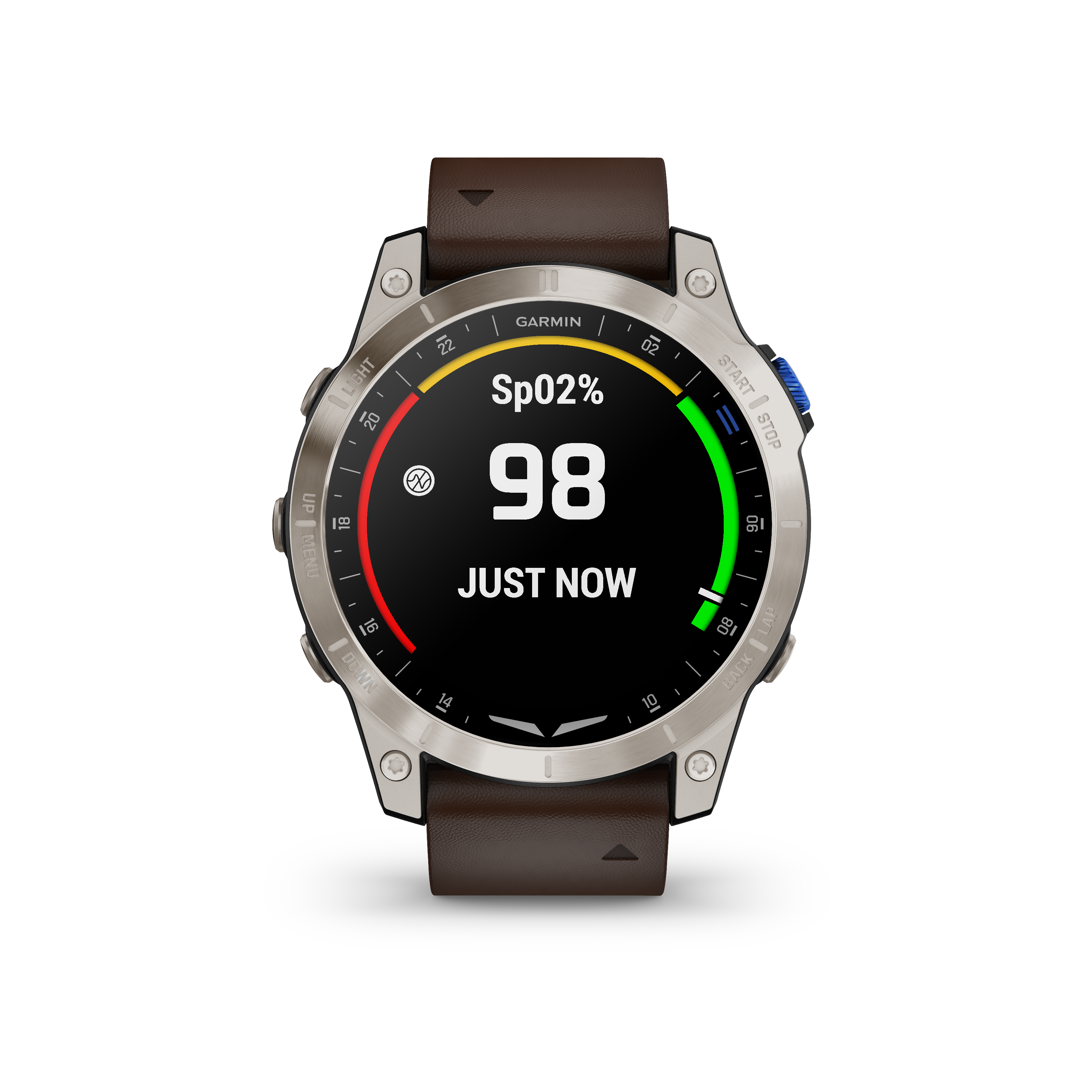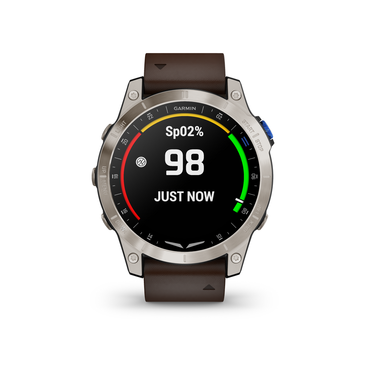 •Monitor your health and wellness with the Health Snapshot™ feature, sleep score, respiration tracking, Pulse Ox3, Body Battery™ energy monitoring, hydration tracking, all-day stress tracking and24/7 heart rate monitoring