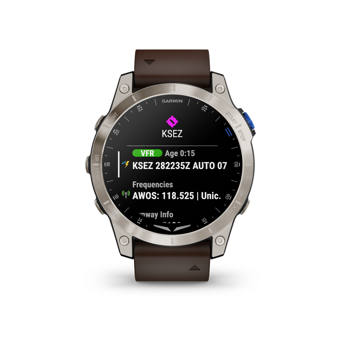 •Connect with the Garmin Pilot™app to transfer flight plans to the watch plus log your flights directly on the watch1