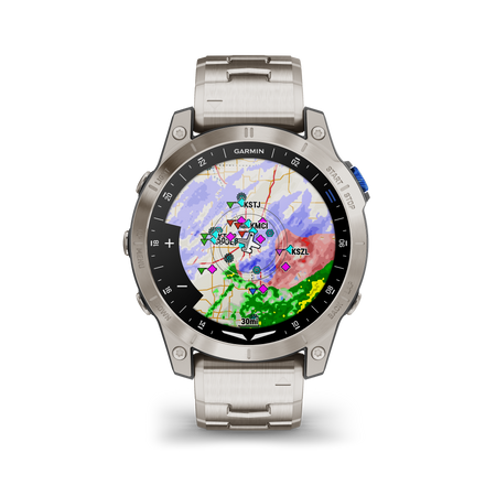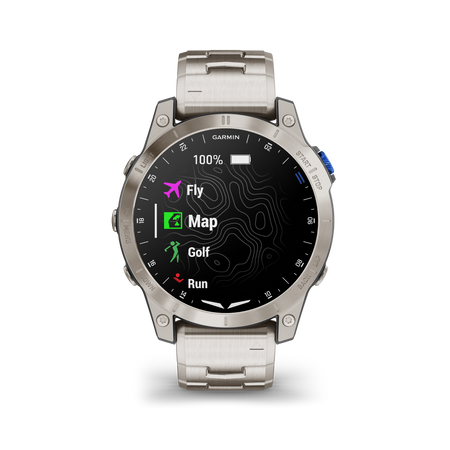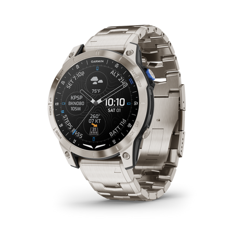 Accelerate the adventure with the D2™ Mach 1 GPS aviator smartwatch. With classic style and a vivid AMOLED touchscreen display, this premium timepiece puts the most advanced tools for flying right at your fingertips. Check weather reports and radar1, get automatic alerts for changing conditions1, and navigate with the moving map, worldwide aeronautical database, and HSI—plus more. Pair with the Garmin Pilot™ app1to transfer flight plans to the watch and log your flights automatically. Use the smartwatch’s health and wellness features to help ensure you’re ready for your next flight—and find new ways to move with its more than 30built-in sports apps and animated workouts. And be ready for departure with up to 11daysofbattery life