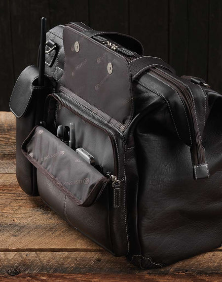 Lightspeed Gann leather flight bag is handmade from full-grain, oiled South American cowhide that will become more supple with age and use. Spacious but cabin-friendly, this carpenter-style bag is a great companion to the pilot who has everything — and likes to take it along.