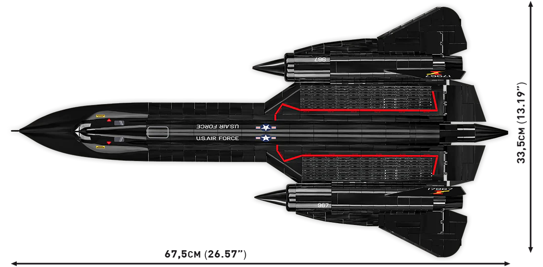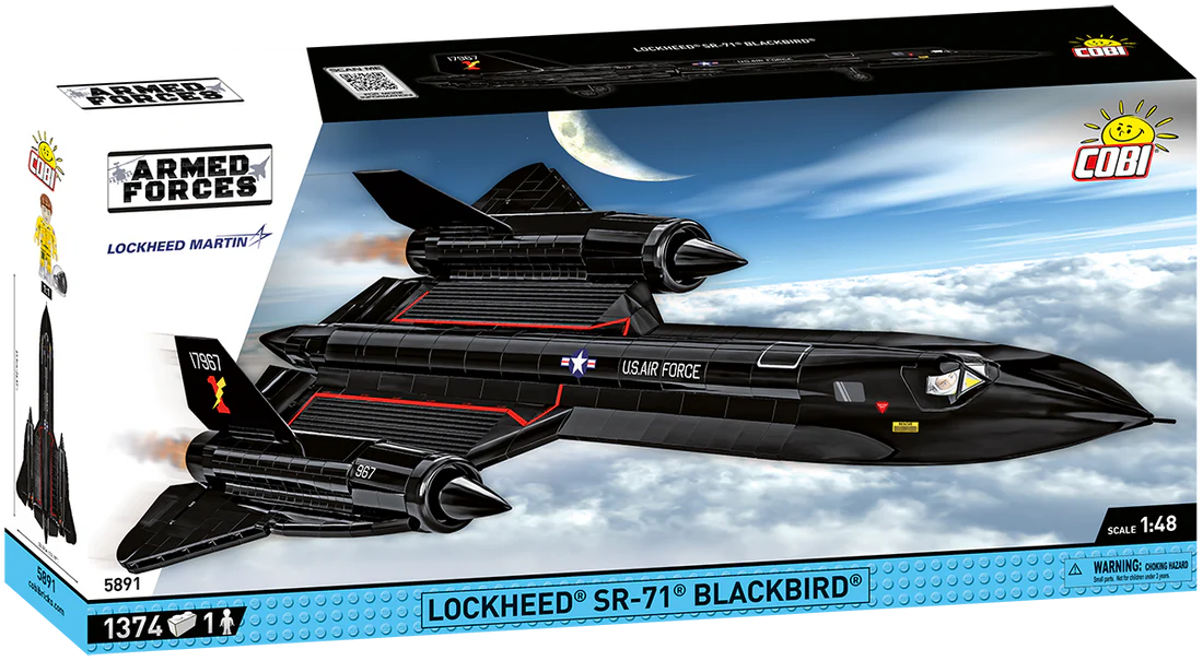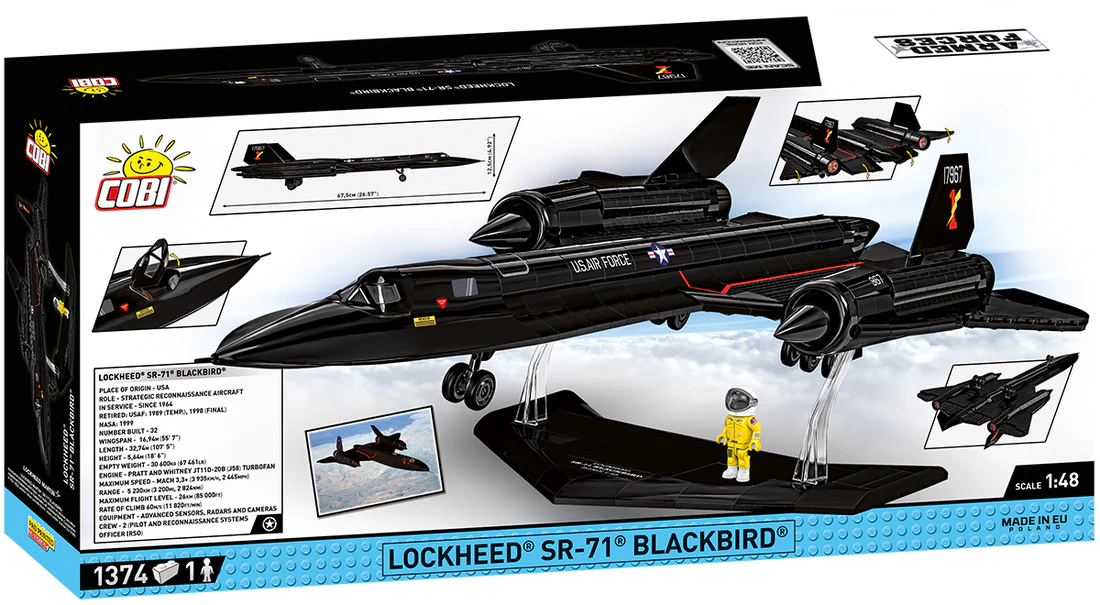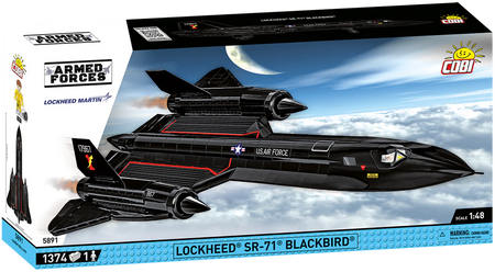 The SR-71 Blackbird was an American reconnaissance aircraft that served in the United States Air Force from the 1960s to the 1990s. It was designed by Lockheed Martin and was one of the fastest aircraft in the world. Its maximum speed exceeded Mach 3 (over 3,700 km/h), and thanks to its operational altitude of up to 26 km, it was difficult for anti-missile defense systems to shoot down. The SR-71 had an advanced design, using titanium, which allowed it to withstand the extreme temperatures generated during supersonic flight. It was mainly used for intelligence gathering, and its ability to escape from enemy missiles was a legendary asset. From 1374 high-quality blocks you can build the legendary SR-71 plane in a modeling scale of 1:48.