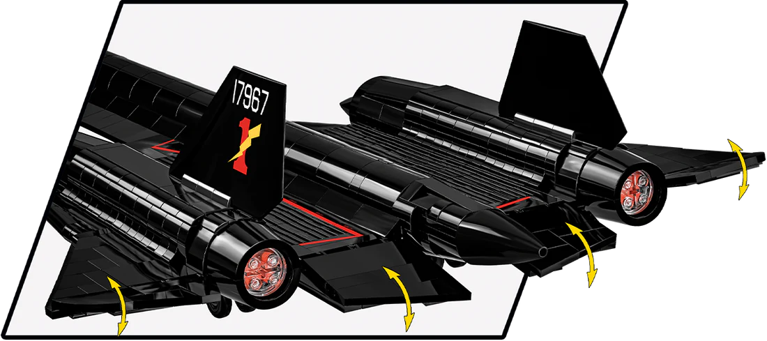 The Blackbird appears for the first time in the COBI offer. The set has been carefully designed, so its construction will bring a lot of satisfaction to the demanding builder. Detachable landing gear, movable wing ailerons and an opening cockpit with space for figures are its basic aviation functionalities, which you will discover during construction. The model has been covered with durable prints depicting US Air Force markings. The set also includes a USAF pilot figure in a characteristic uniform reminiscent of astronaut suits!