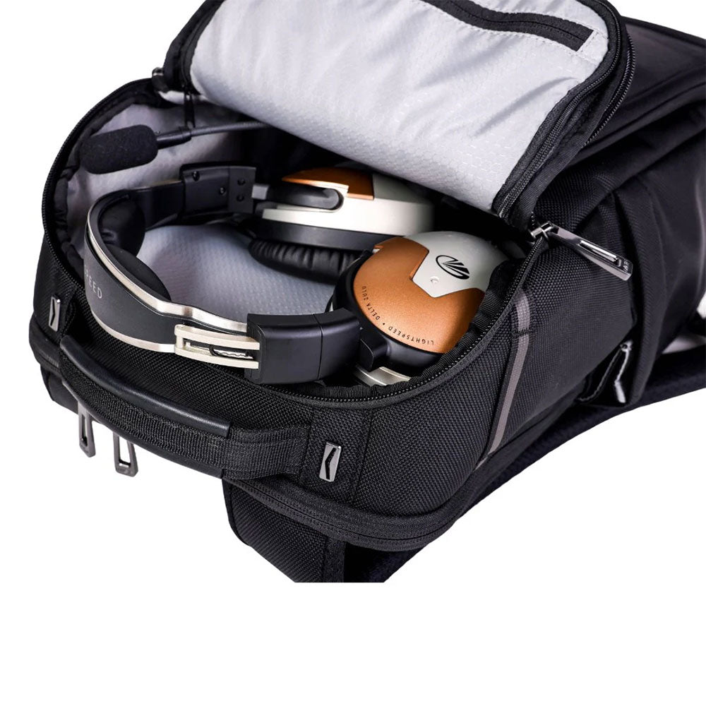 The Flight Bag PLC Elevate, the newest addition to the successful PLC Series collection. Crafted from rugged ballistic nylon and featuring EVA foam on the front pocket to resist wear and tear, this one headset bag is both compact and spacious. It boasts well-thought-out pockets to keep your essential gear organized and safe, a self-standing shell with premium padding, sleek all-metal parts, the best in quality YKK zippers, no-slip backpack straps, and more. Designed by pilots for pilots, every detail has been meticulously considered to ensure quick and safe access to gear during flight. Built to withstand the rigors of flying, the PLC Elevate combines functionality with a cool, professional look.