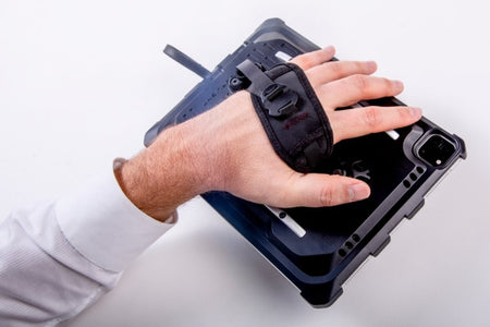 Secure your iPad on the go! The new iPad Hand Mount allows you to grip your iPad or tablet while maintaining a full range of motion. The secure, quick release, and adjustable strap pairs with a solid aluminum base. Included is an adjustable, shock absorbing neck strap that quickly clicks in or out to secure the iPad from a fall, and a hand strap that locks into MYGOFLIGHT's iPad Sport Case™ Cool Case™ & or Cradle™. The Hand Mount can be used with or without the neck strap.