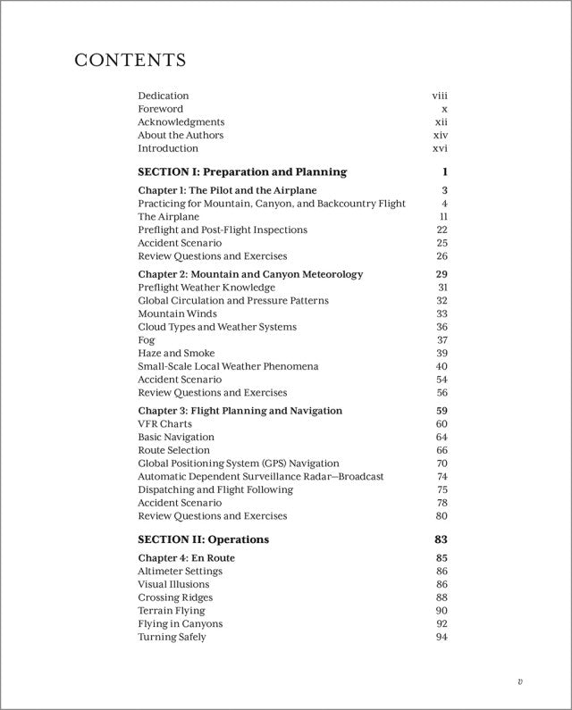 Flying in these enticing environments often entails operations over relatively inaccessible terrain in a challenging and sometimes unforgiving environment. This necessitates the proper mindset, discipline, and procedures to operate efficiently and safely. Operating over mountains, navigating through canyons, taking off and landing on unimproved, high-altitude airstrips in confined areas, and maximizing airplane performance requires specialized skills. The authors and guest writers share information and tips gleaned from more than 150 years and 100,000 hours of collective experience as professional mountain and backcountry pilots and flight instructors.