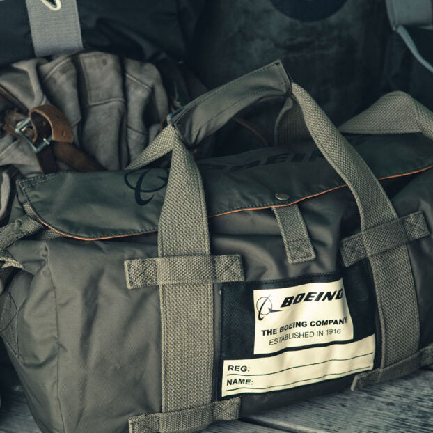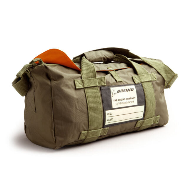 The Boeing Stow Bag is inspired by the legacy of one of the world’s best (and largest) aircraft manufacturers. With a khaki nylon body, bright orange interior, indestructible canvas handles and an adjustable shoulder strap, this compact duffle begs to be marked up with a pilot’s name and license number.