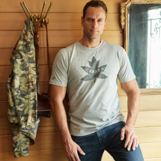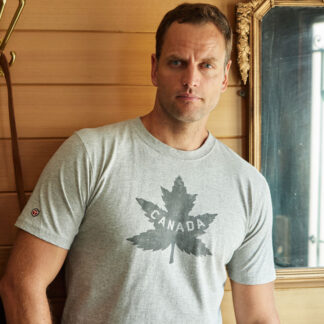Our new Canadian Heritage T-shirt is inspired by the 1928 Olympic Team cardigan crest. The Silver Maple Leaf silhouette is a favourite classic – like a Red Canoe.