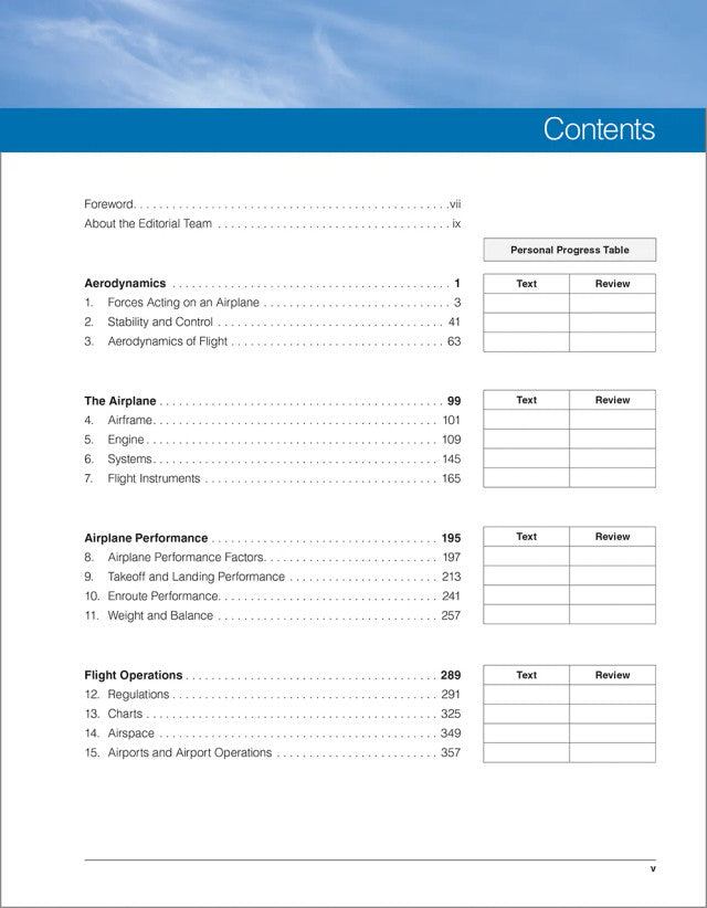 Pilots seeking their Commercial Pilot Certificate will find separate, clearly labeled sections throughout this book to prepare for the Commercial Pilot FAA Knowledge Exam. Review questions (and answer keys) for each chapter reinforce essential concepts to aid home or classroom study. An extensive glossary of aviation abbreviations and acronyms and a detailed index are included.