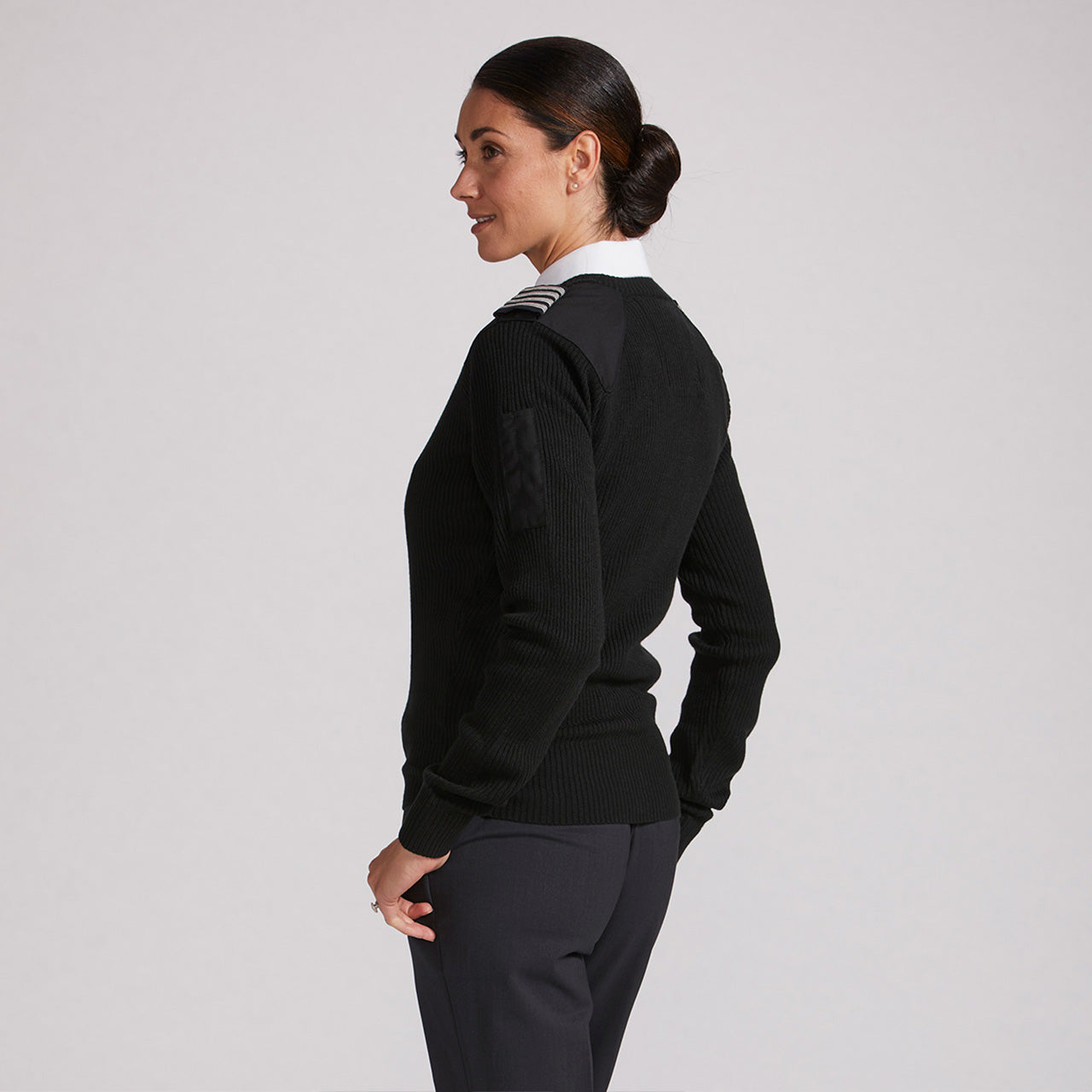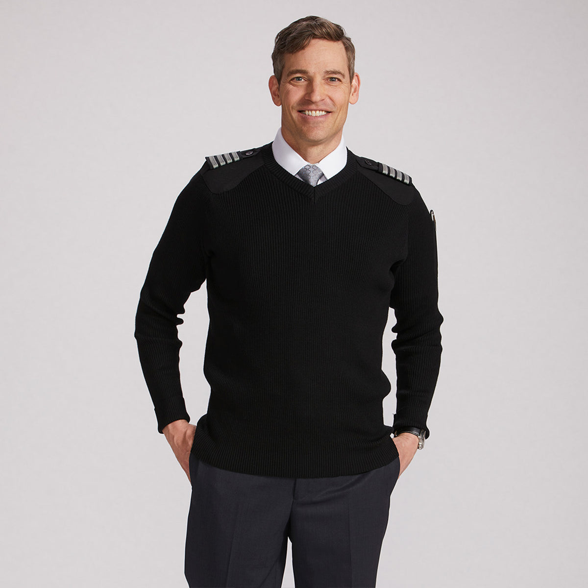 With it’s low profile, the Cali (California weight) is designed to work as a layering piece. The small gauge yarns stretch to the wearer’s shape providing a clean understated and professional look. Pen slot, epaulet straps, 100% acrylic, machine washable.