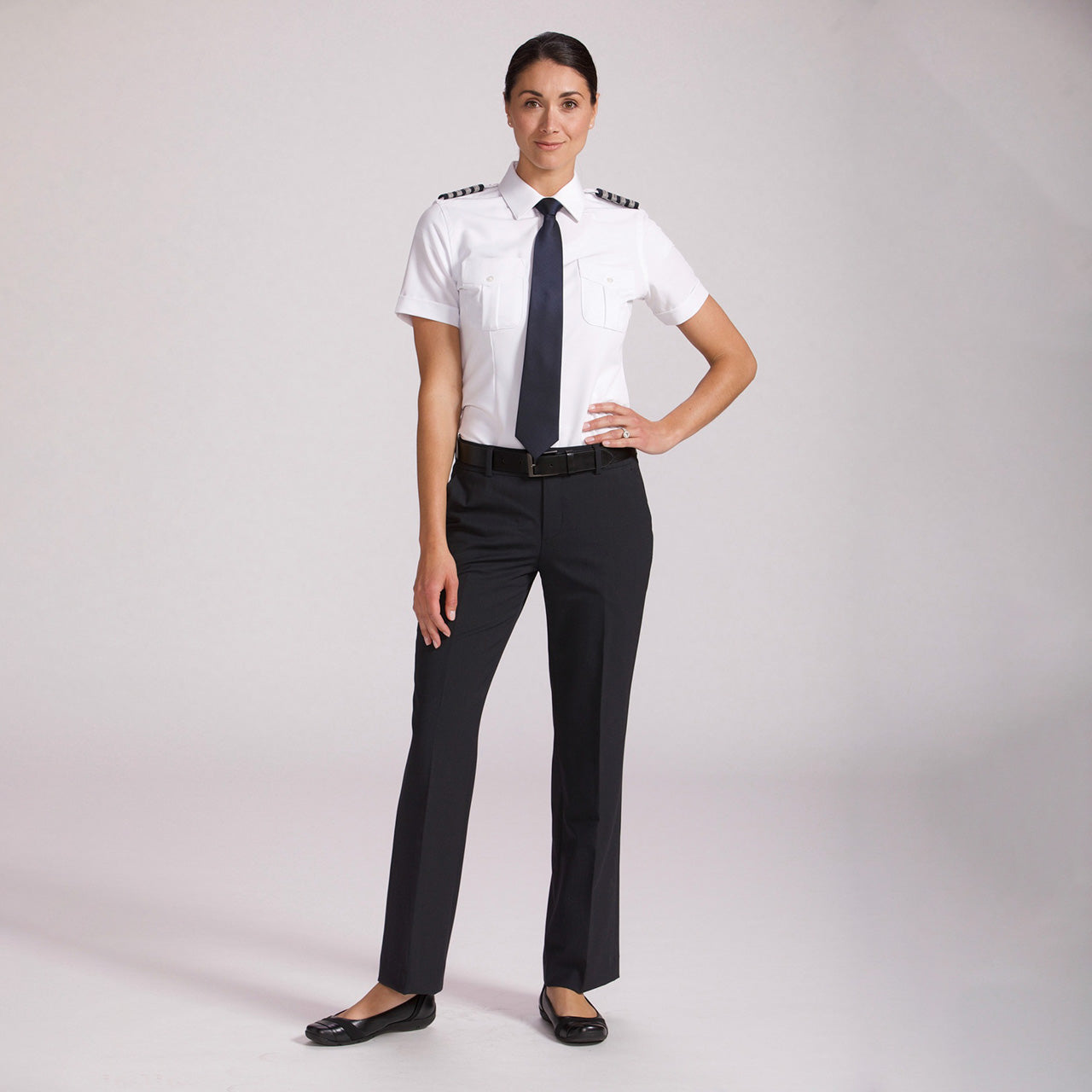 All women’s pilot shirts are made with stretch fabrics for a better fit without sacrificing comfort.